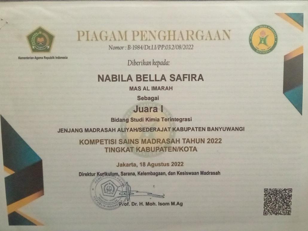 : Juara I KSM Bidang Studi Kimia Terintegrasi